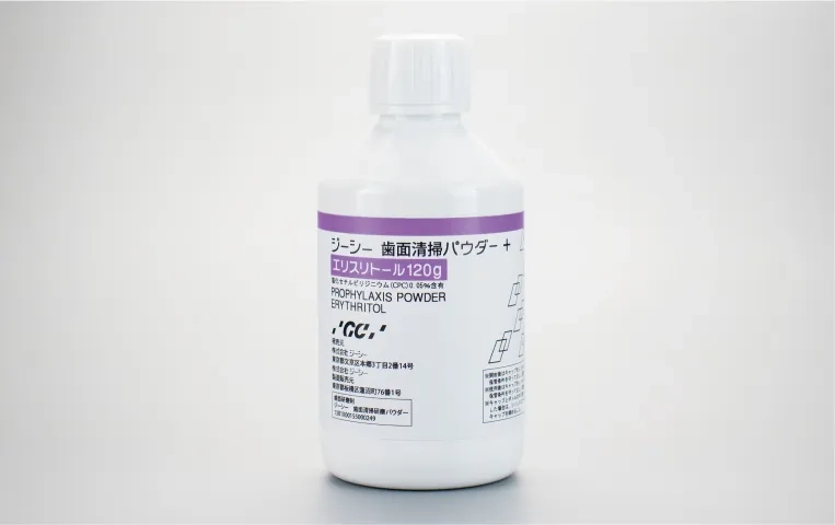 1.縁上・縁下で使用可能なパウダー。主成分のエリスリトールは天然の糖アルコールです。 2.歯面清掃研磨パウダーより粒子サイズが細かいため(平均粒径14μm)、歯面をより傷つけず処置ができます。 3.水溶性が高いため歯周ポケット内の噴射でもパウダーが残りにくくなっています。 ※歯科用ユニット イオム アクア/イオム 和/イオム ナゴミ for DHのオプション製品キット エアフロー(エアフロー/ペリオフロー)関連の製品です。