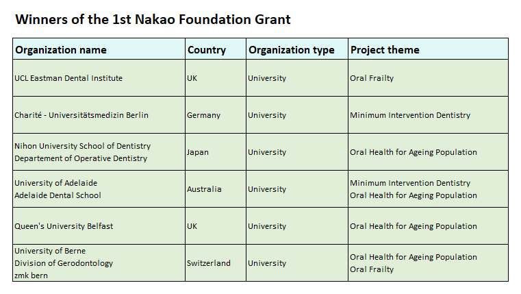 The Foundation’s aim is to contribute to the realization of a truly healthy long-living society, as well as a high quality of life by supporting research and analysis to improve global oral health. We hope that this grant will support this activity globally.