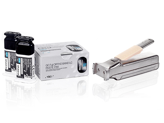 GC Fuji ORTHO™ BAND LC is a light-cured, resin-reinforced orthodontic glass ionomer band adhesive available in easy-to-use automix paste paks, which simplifies the application, ensuring a perfect mix and easier clean-up.