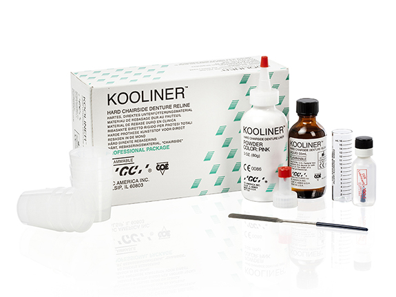 KOOLINER™ is a hard, chairside reliner that has been formulated for reduced exothermic heat. This product can completely self-cure in the patient's mouth in approximately 10 minutes.