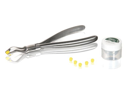 GC PLIERS can be used alone or with enhancement items. GC PLIERS have a specially rasped finish with small sharp pins for a positive grip use (with rubber tips and/or emery powder). Difficult removals makes them a must in every dental office. Special enhancements: rubber tips and emery powder allow for a positive grip on cast crowns and will not harm surface of crowns or veneers.