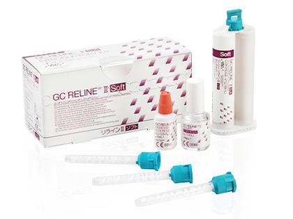 RELINE II Soft is an A-silicone material providing comfort and long-lasting elasticity for indications of sharp or bony alveolar ridges and undercuts. It is used to adapt dentures after extractions or implant surgeries.
