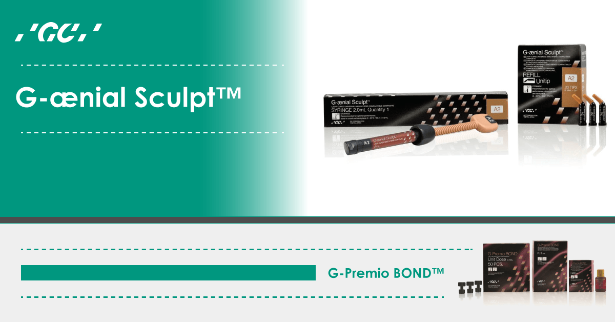 GC America has recently introduced two new products, G-Premio BOND™ and G-ænial Sculpt®. G-Premio Bond is a one bottle, universal (8th generation) adhesive that has a reliable bond to enamel and dentin and can be used in conjunction with a total etch, self etch, or selective etch technique. It is compatible with all direct restoratives and due to a very thin film thickness (3 µm) can also be used with indirect restorations when light cured. It features a new bottle design for more precise dispensing and temperature control and can be used to treat dentin hypersensitivity.