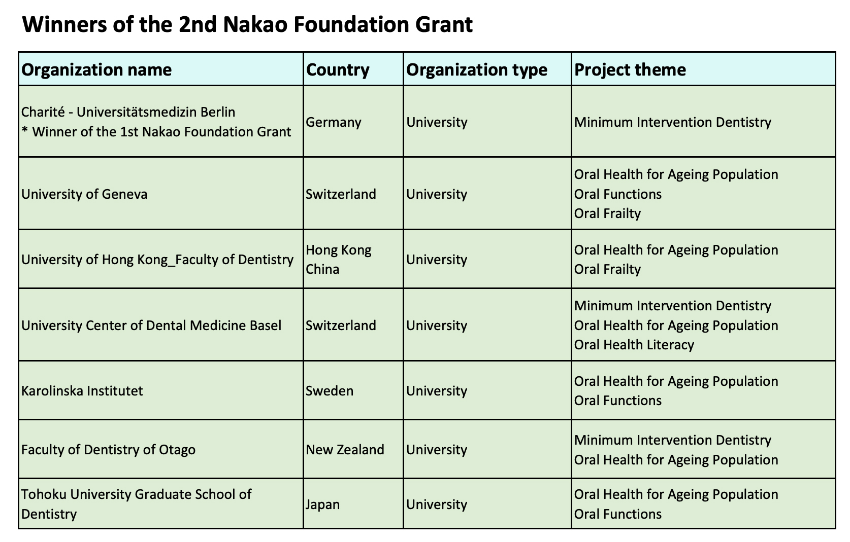 The Foundation’s aim is to contribute to the realization of a truly healthy long-living society, as well as a high quality of life by supporting research and analysis to improve global oral health. We hope that this grant will support this activity globally.