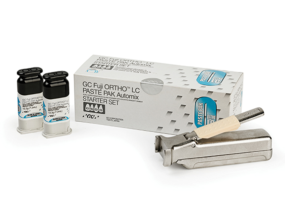 GC Fuji ORTHO™ LC Automix is a light-cured, resin-reinforced orthodontic glass ionomer bracket adhesive available in easy-to-use automix paste paks, which simplifies the application, ensuring a perfect mix and easier clean-up.