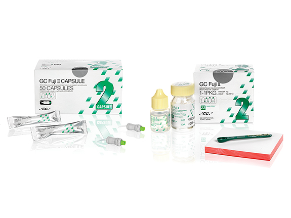 GC Fuji II® is a self-cured, glass ionomer restorative featuring high resistance to water which can be finished in just 15 minutes (under water spray). Its high surface hardness provides a durable restoration. It is available in powder-liquid or premeasured capsules.