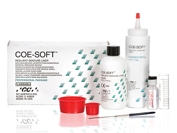 COE-SOFT™ is a resilient, self-curing reline material that is used when the patient requires a soft, temporary liner in upper or lower dentures. COE-SOFT™ polymerizes in or out of the mouth in approximately 15 minutes. The reline will normally last for approximately 3 months.