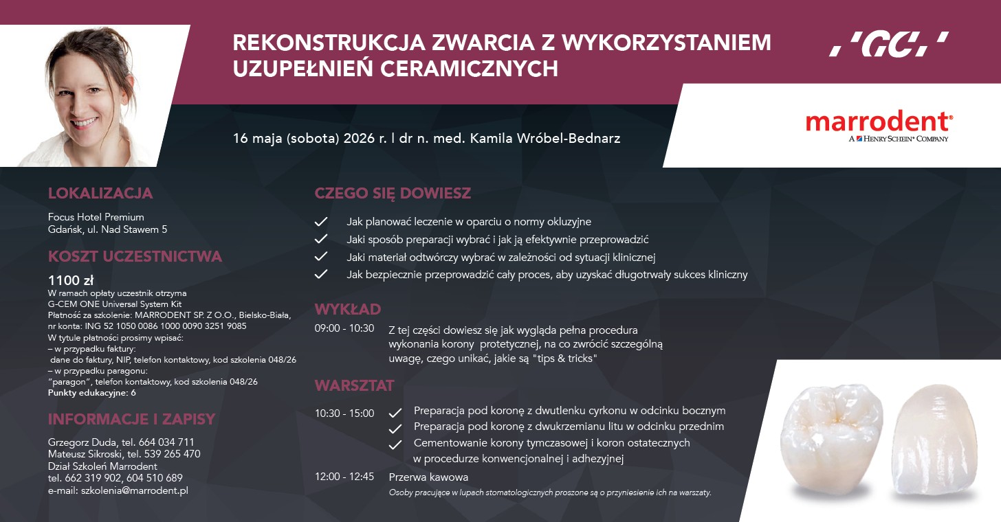 Rozbudowana część praktyczna obejmująca dwie preparacje po uzupełnienie pośrednie – w odcinku przednim i bocznym.