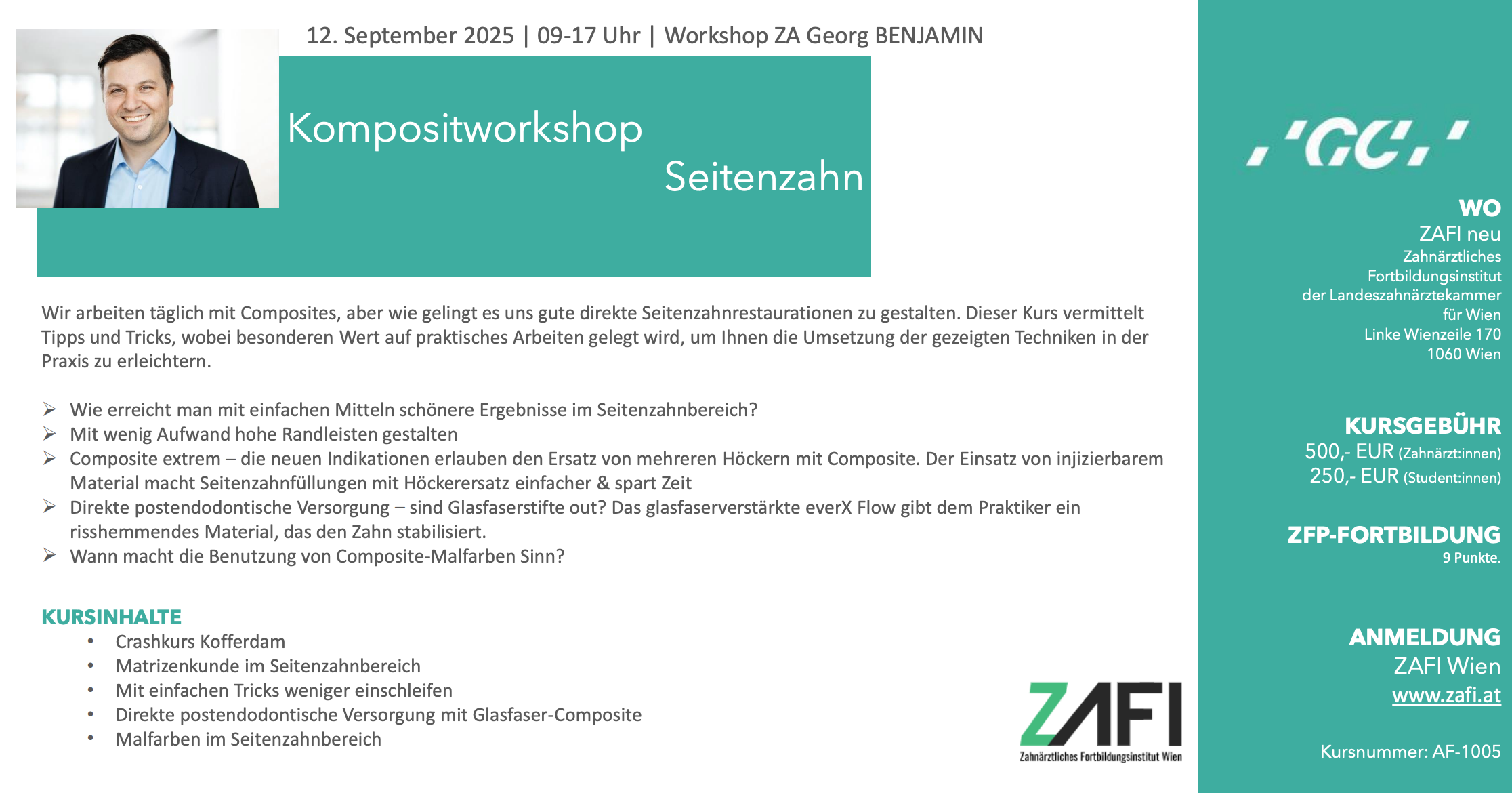 Composites, aber wie gelingt es uns gute direkte Seitenzahnrestaurationen zu gestalten. Dieser Kurs vermittelt Tipps und Tricks, wobei besonderen Wert auf praktisches Arbeiten gelegt wird, um Ihnen die Umsetzung der gezeigten Techniken in der Praxis zu erleichtern.