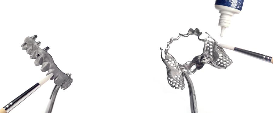 Der METAL PRIMER Z (der Nachfolger des METALPRIMER II) stellt stabile Verbindungen zwischen Metallgerüsten und den verschiedensten Materialien auf Kunststoffbasis her.