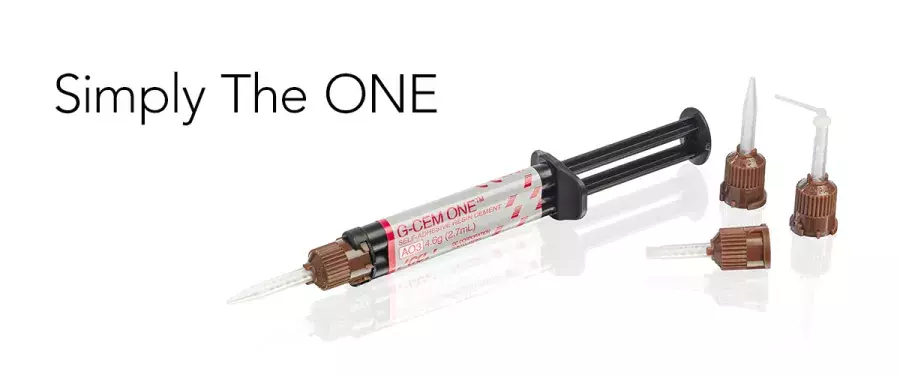G-CEM ONE is a highly advanced, universal self-adhesive resin cement with dual-cure ability, designed to provide strong and durable bonding of indirect restorations.
