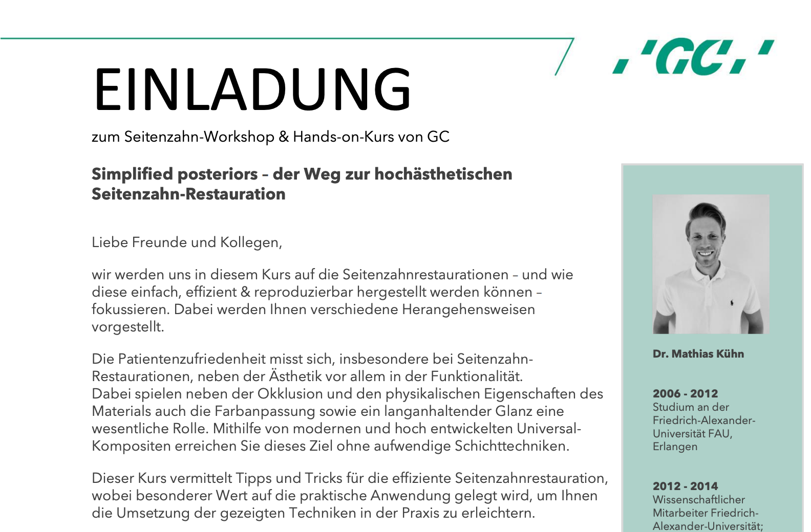 Seitenzahn-Workshop & Hands-on-Kurs von GC