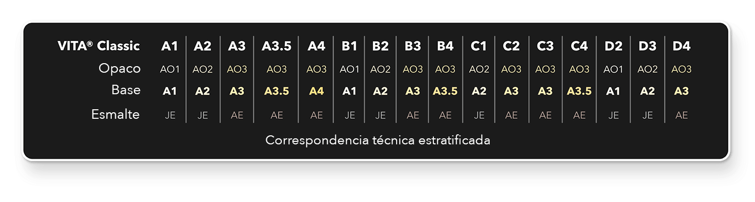 estética de los 16 colores Vita clásicos