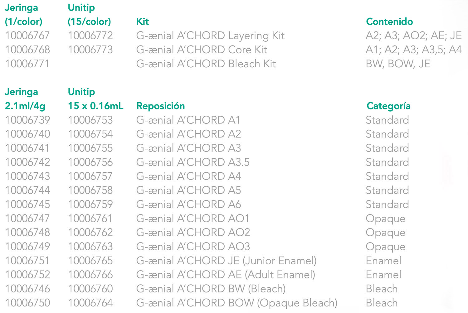 Listado de productos G-ænial® A’CHORD