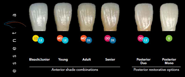 Essentia rappresenta la pura essenza della stratificazione dei compositi. Bastano sette siringhe per realizzare la soluzione estetica perfetta per tutti i restauri.