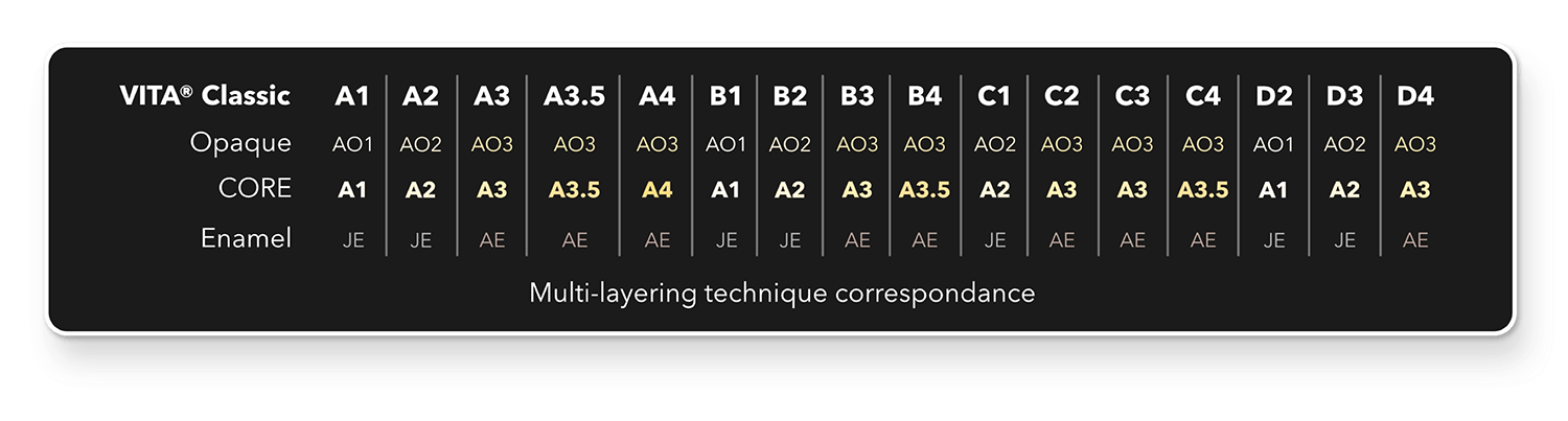 5 core shades that achieve the aesthetics of the 16 classic Vita shades with ease