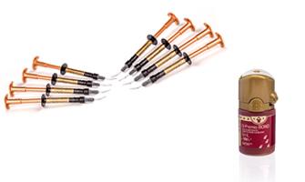 = 1x G-CEM ONE strzykawka (4,6g), 8x końcówka mieszająca GC Automix Tips Regular, 2x końcówka mieszająca GC Automix Endo tips