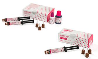 = 1x G-CEM ONE spruta (4,6g), 8x GC Automix Tips Regular, 2x GC Automix Endo tips, 1x G-CEM ONE Adhesive Enhancing Primer 2mL