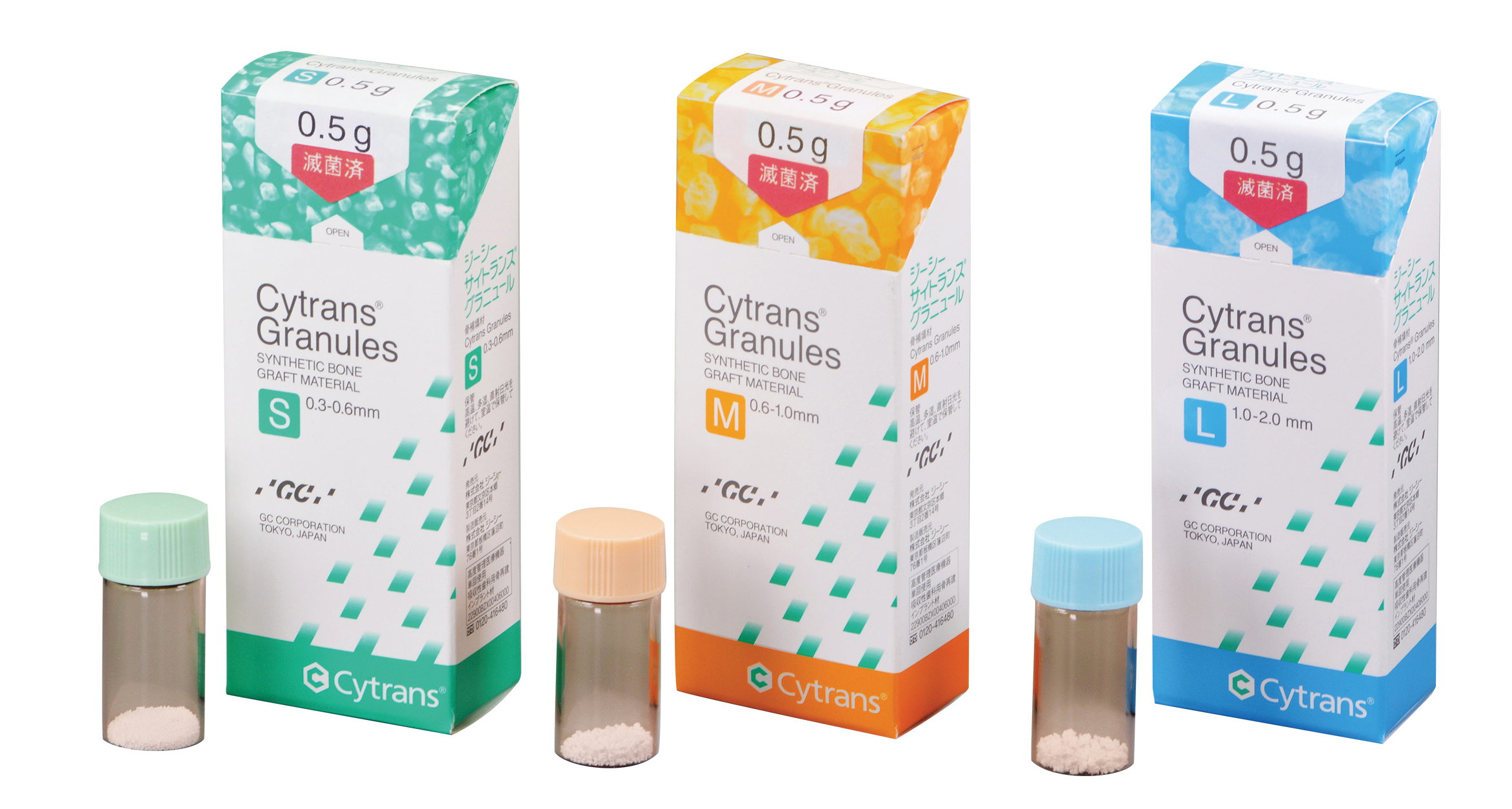 Cytrans® Granules are composed of carbonate apatite with excellent osteoconductivity, leading to early bone formation. The resorption property of Cytrans® Granules will allow for gradual replacement with host bone, keeping the function as a scaffold.