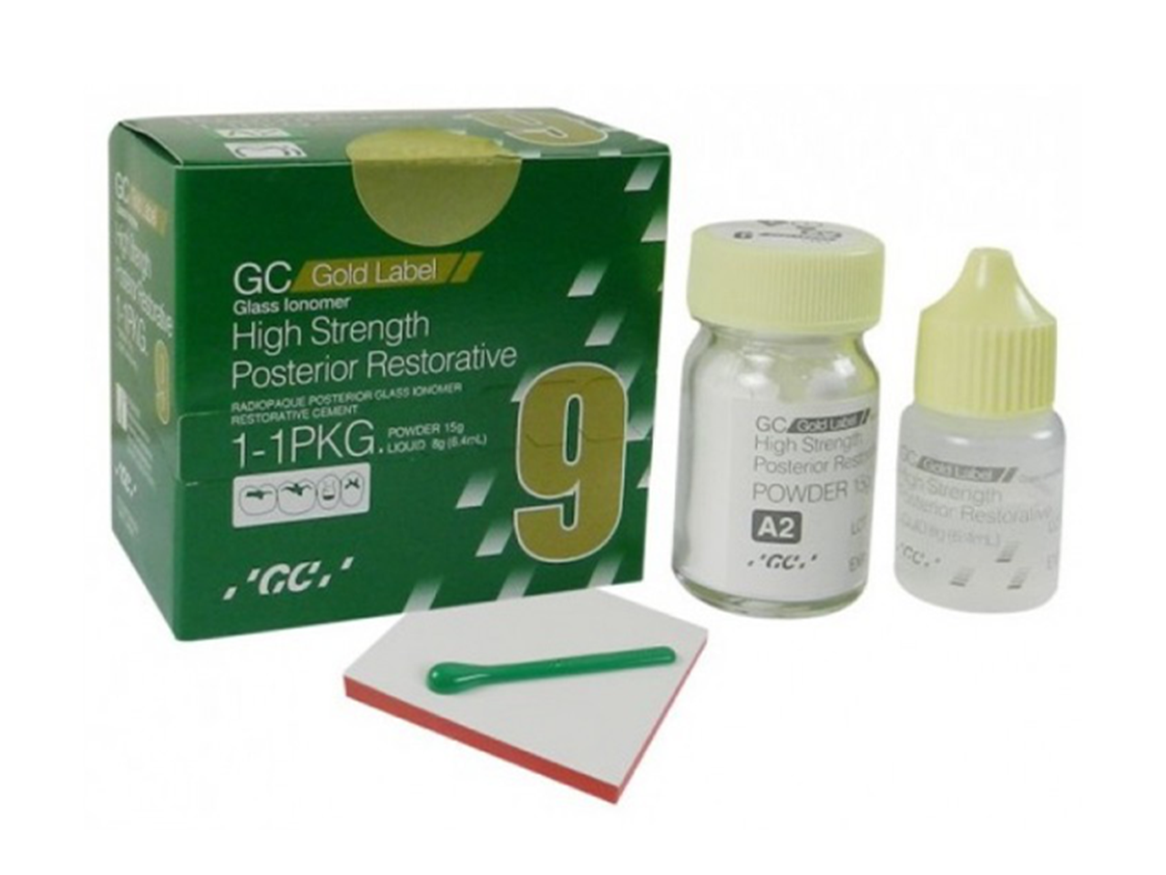 GC Gold Label 9 is a type IX glass ionomer cement used as a high strength restorative for posterior teeth. It is a strontium based glass ionomer cement containing strontium glass.