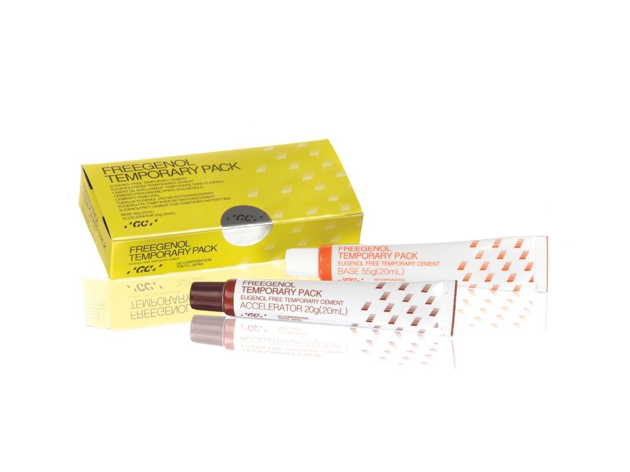 FREEGENOL is a patented, non-eugenol temporary luting cement. It is completely compatible and safe to use with acrylic resin materials, as well as plastic provisional materials. Biocompatible with tooth structure and soft tissue, GC FREEGENOL is easy to use and mixes to a smooth, creamy consistency.