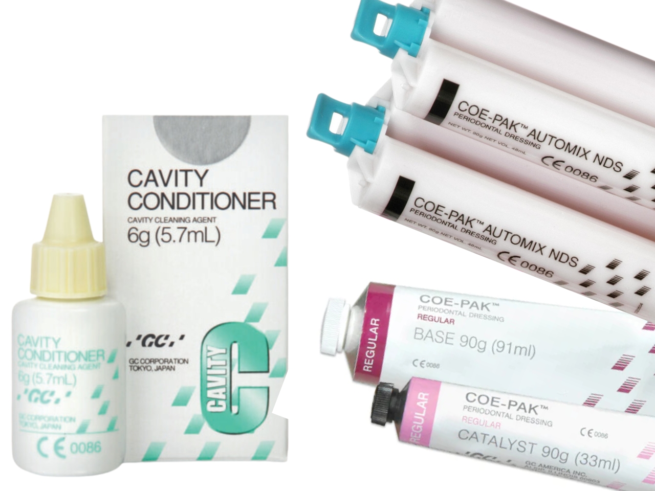GC's miscellaneous products include various solutions for dental procedures, including surface conditioner and protective coatings.