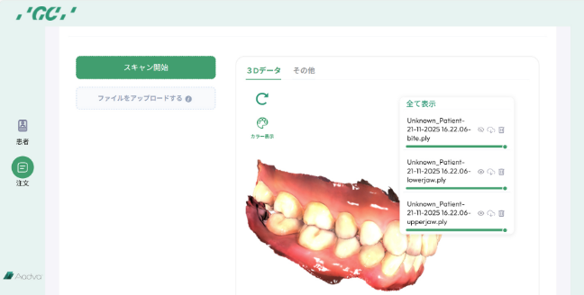ジーシーが歯科医院および歯科技工所向けに提供する、オーダー情報やスキャンデータを国内クラウド上で共有できるサービスです。