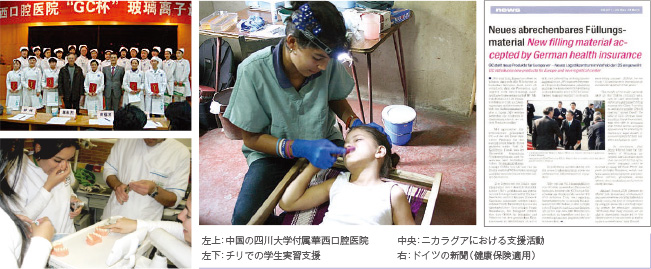 GCアジアは、歯科診療の支援活動に必要となる材料の提供をさまざまな地域で行っています。ベトナムでは、"EMWDental Program" として、世界中の歯科医師、歯科衛生士、学生などが数千人の子どもたちにボランティアで歯科治療を行っています。またカンボジアでは、NGO団体による "Cambodia Tooth Angel Project" として、孤児院の子どもたちに歯科治療や健康と口腔衛生についての教育を行っています。さらに、アフリカでも "Six-Year-Molar Focus oral healthproject" として、ARTテクニックを用いた診療や予防に関する教育を広めています。