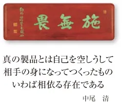 ジーシーでは、創業者の一人である中尾清が提唱した社是として、「施無畏」という言葉を掲げています。ジーシーではこの教えを基に、お客様の立場にたち、お客様からみた価値の実現を第一に考えた真の製品づくりを実践するため、いずれの部署に所属していても個我を離れてお互いに敬愛する“なかま”の集団として行動しています。