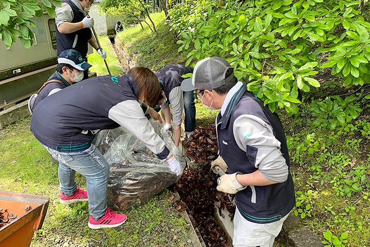 なお、富士小山工場の環境保全活動は、環境営繕係とOBの方々が中心となり取り組んでおります。ジーシーを退職したOBの方とアルバイト契約を結び、構内の植え木の剪定、草刈り、落ち葉の清掃、春季の害虫消毒作業等を行っていただいております。