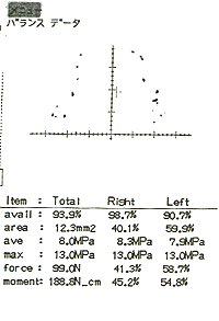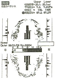 矯正治療を必要とする患者の多くは、全身および、口腔のポスチャーに問題点があったりするか、咬合力等に問題があるケースが多い。この症例では、10分間のチューブの咀嚼訓練で咀嚼力は99N(約9kgw)から146N(約14kgw)と50%増加した。咬合面積も12.3mm2から20.1mm2に増加した。咬合バランスには大きな変化はなかった。チューブを噛む位置は通常、第一小臼歯を指示している。咬合バランスに15%以上の差がある場合は、咀嚼力の弱い側のみにチューブを真っすぐな状態で噛む訓練を行うことでバランスを修正する。ただし、毎日の訓練を行わないと、咀嚼力はすぐにもとに戻ってしまうので、1日10分2回の訓練をし、最低3ヵ月続けることが必要である。この期間に正しく訓練すれば、咀嚼力は2倍に増加する。また、ガムによる咀嚼によっても同様の結果が得られる。