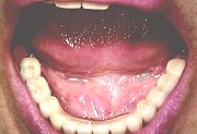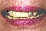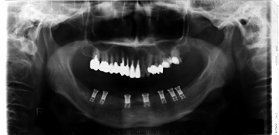 62才、女性。35年間下顎総義歯で悩んでいた。上顎は天然歯。