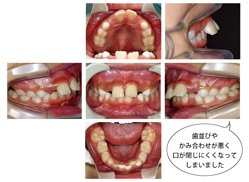 歯並びや噛み合わせの異常により、口が閉じにくいために口呼吸となってしまう場合。