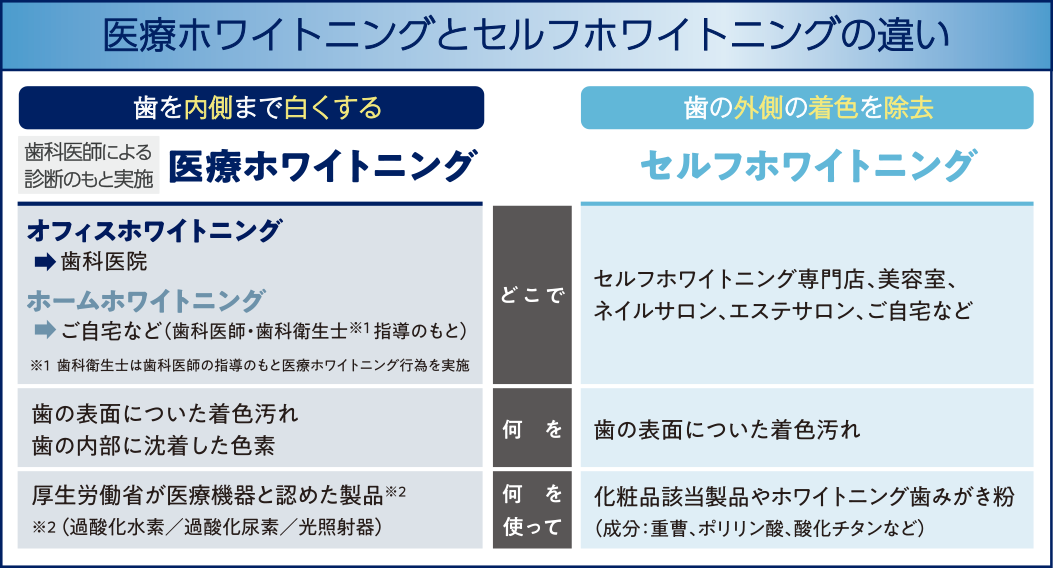 ◆ 医療ホワイトニング/セルフホワイトニングとは?