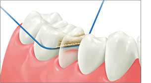 デンタルフロスを使用すると、歯と歯の間の磨きにくい部分のプラークも、きれいに落とすことができます。