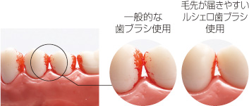 歯ブラシが歯と歯の間まで行き届かず、歯間部の磨き残しが目立ちます。