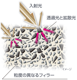 粒度の異なるフィラーの組み合わせにより光拡散性が向上し、