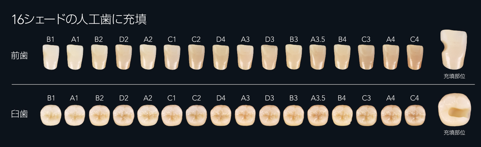 咬合面にも使用できる高い曲げ強度と優れた耐摩耗性を実現しました。