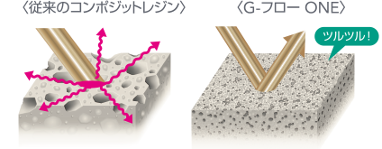 独自の技術を駆使したナノフィラーの均一分散化により、摩耗による表面フィラーの脱落が起こりにくく、