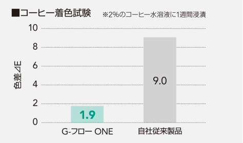 吸水量を大幅に抑制する独自のレジンマトリックス技術により着色しにくく、