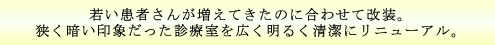 患者層の若返りと建物の内・外装の老朽化から、明るくモダンな印象に改装した。