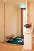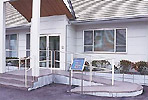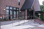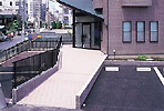 歯科医院は床下配管の関係から、戸外と院内に高低差が生じます。そこで、階段だけでなくスロープによって段差のないバリアフリー設計の導入も必要です。バリアフリーの基本は安全です。スロープは雨や雪で滑らないように防滑対応の床材を用いるとともに、手すりが必要です。 |