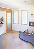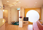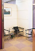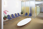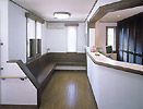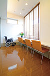 基本は、患者さん同士が対面せず、受付から全体が見渡せるレイアウトです。座席数はユニット数の2倍が基準です。動線確保のために、椅子の前は 1500mmの余裕が最適です。造りつけの椅子の場合は、座面高さは約420mm、一人分の幅は約 600mmが目安です。