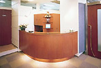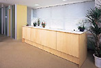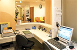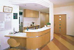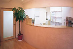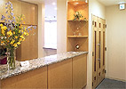 歯科医院を最初に印象づけるのが受付です。それだけに、構えずスッキリしたデザインが求められます。受付はカルテや各種機器、歯ブラシ等の販売品も多く乱雑になりがちですので、事前に収納スペースを確保します。高齢者や子供のために、カウンターの一部を低くする例も増えています。