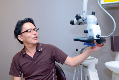 「より緻密なMI治療のためにマイクロスコープは欠かせないんです」と岸川先生。保険・自費診療にかかわらず、必要と思えば治療に使用されるという。