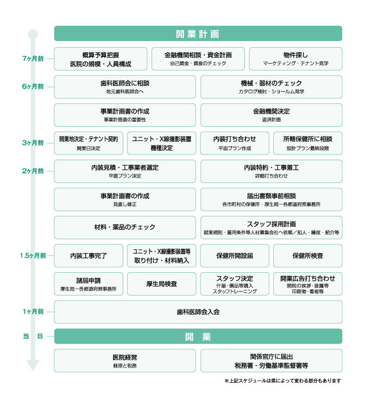 歯科医院開業までのスケジュールは下記の表をご参考にしてください。