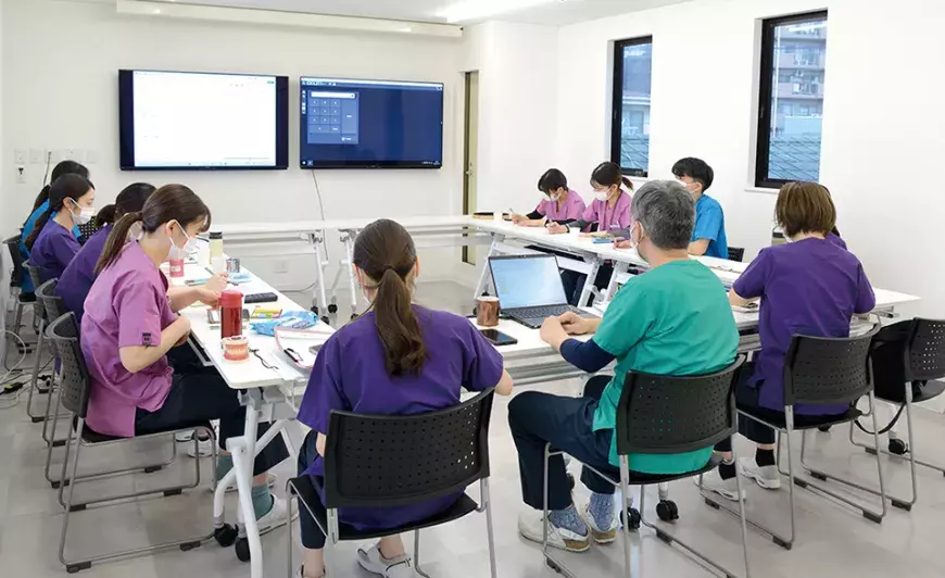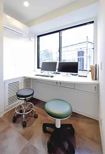 「デンタルクリニックK」の大きな特徴として挙げられるのは、すべてのユニットにマイクロスコープが装備されているところだ。マイクロスコープは歯科医師のみならず、歯科衛生士も使用。先輩の施術の動画を後輩が観て学ぶなど、教育面でも活用している。また、日本顕微鏡歯科学会の認定歯科衛生士が多数在籍し、全員が認定歯科衛生士になるべく日夜研鑽を積むなどモチベーションも非常に高い。熱心で高いスキルを持った歯科衛生士に長く勤めてもらいたいという願いが、増築を後押しした。