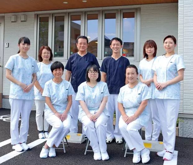 家族3人だけだったスタッフは、医院の成長とともに増員して現在は9人に。ご子息の優一先生も非常勤として勤めている。そして2021年5月、旧医院の隣のスペースに医院を新築し、移転を果たした。