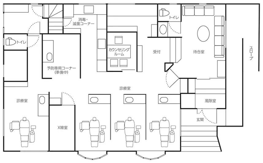 「少し前までは削って詰めるなどといった、言わば事後対応が主でした。けれどそれでは患者さんのためにならないという思いが強くなりました。高齢の患者さんも増えていきますし、さらには歯周病がもたらす全身疾患も明らかになってきていますので、自分でしっかりプラークコントロールができる人を増やしたい。そのような予防歯科にシフトするための改装でした。息子も一緒に診療してくれることになり、第二のスタートという気持ちでもありました」と知子先生。
