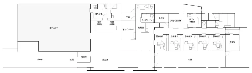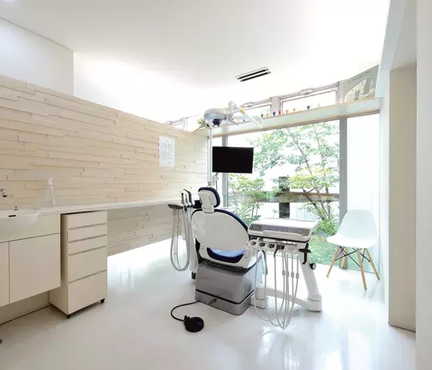 医院の入り口を抜けると、歯科と眼科の受付が並んでいる。受付を正面に見て左手が眼科のスペース、右手が歯科のスペースとなっている。歯科の院長である木下滋先生は、2016年に父から歯科医院を引き継いだ際に、旧クリニックから500メートルほど離れた現在の地に新築移転した。その後、姉で眼科医師の和泉先生を眼科の院長に迎えて医院を経営している。滋先生は、歯科と眼科の併設について相乗効果を実感しているという。